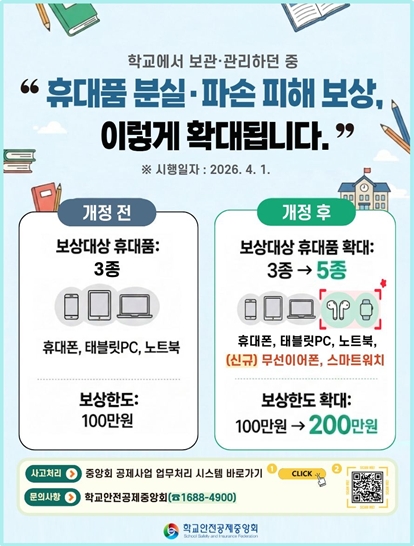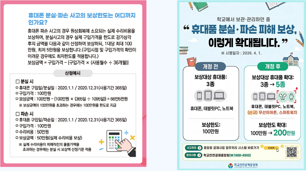 교육활동 중 발생한 학교 물품 또는 학생 개인 물품 파손 사고도 보상이 가능한가요?
