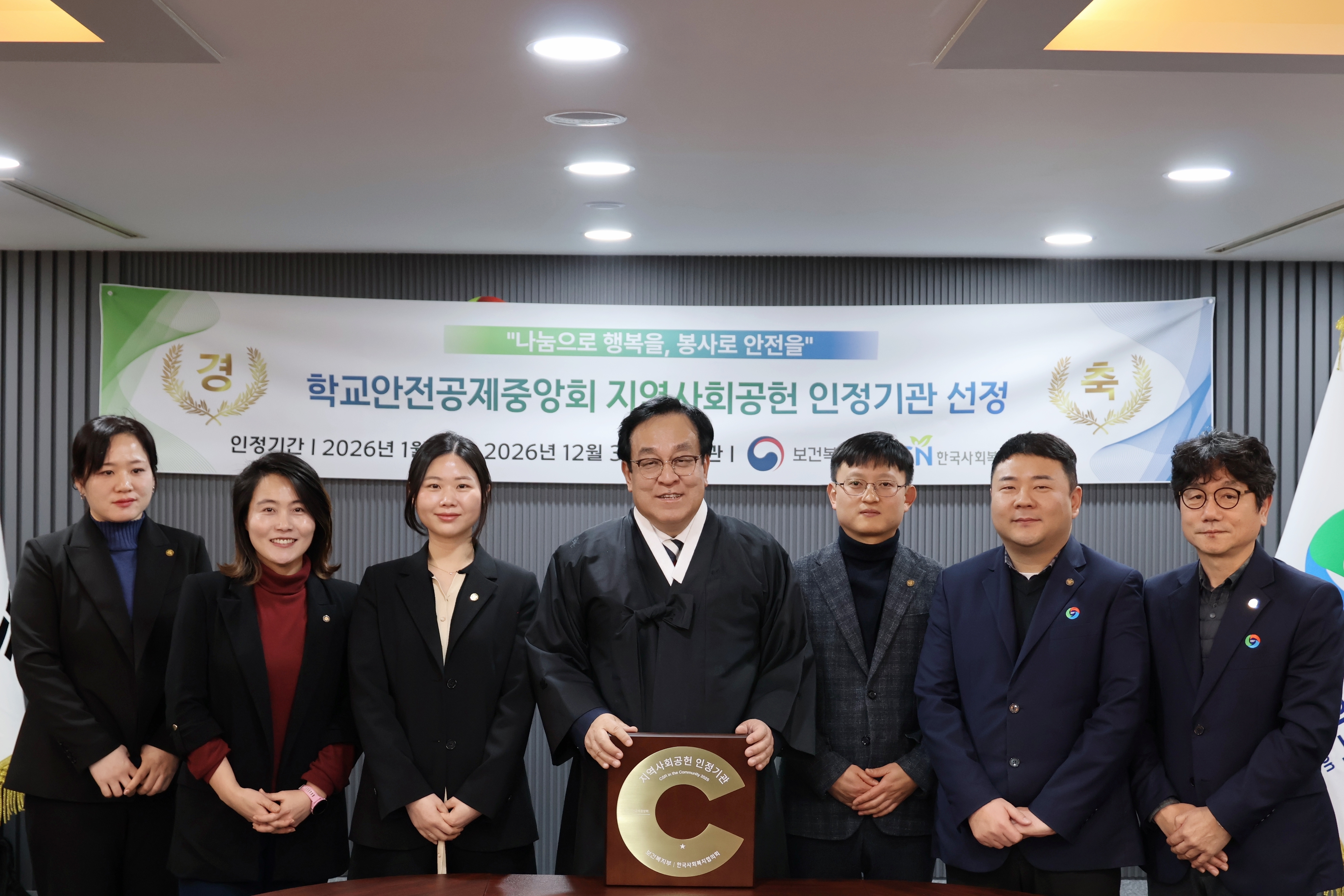 2026.1.2.(금) 학교안전공제중앙회 시무식과 우수직원 표창장 및 지역사회공헌 인정기관 패 수여식 사진입니다.(학교안전공제중앙회 8층 대회의실)