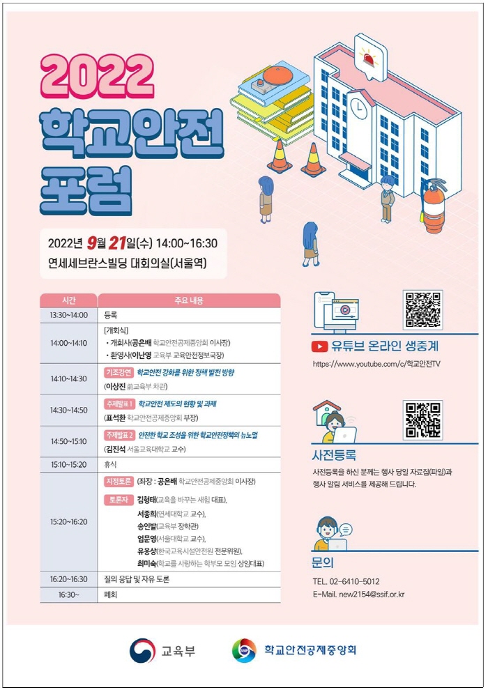 교육부와 학교안전공제중앙회는 학교안전법 시행 15주년을 기념하여 「2022 학교안전포럼」을 개최합니다.