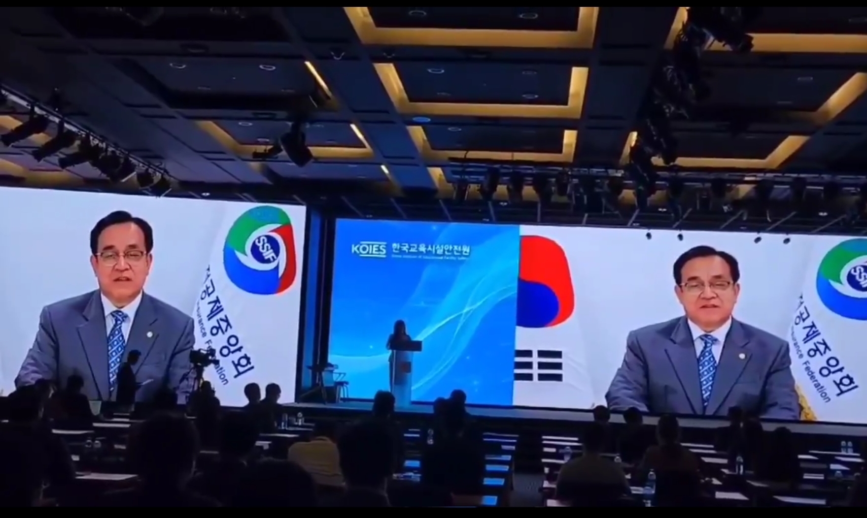 이사장, 한국교육시설안전원 창립 75주년 기념식 및 2023년 교육시설 안전포럼 영상 축사 및 사진입니다(2023.8.9/중소기업중앙회 Kbiz 홀).