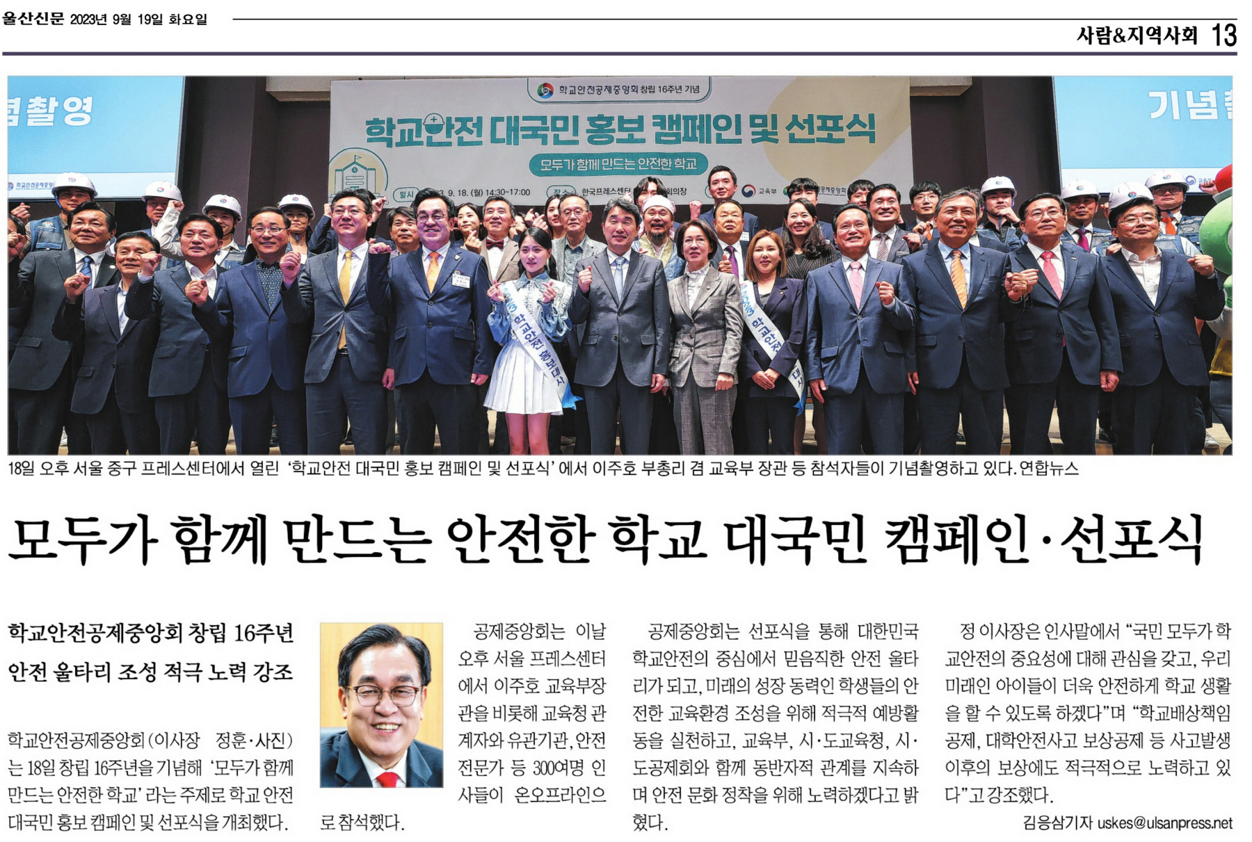뉴시스 학교안전 대국민 홍보 캠페인 https://newsis.com/view/?id=NISI20230918_0020040504