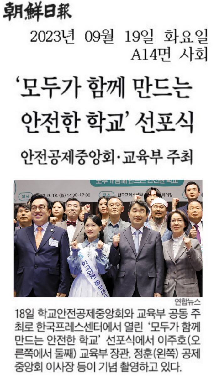 연합뉴스 학교안전 대국민 홍보 캠페인 및 선포식 https://www.yna.co.kr/view/PYH20230918169500013?input=1196m