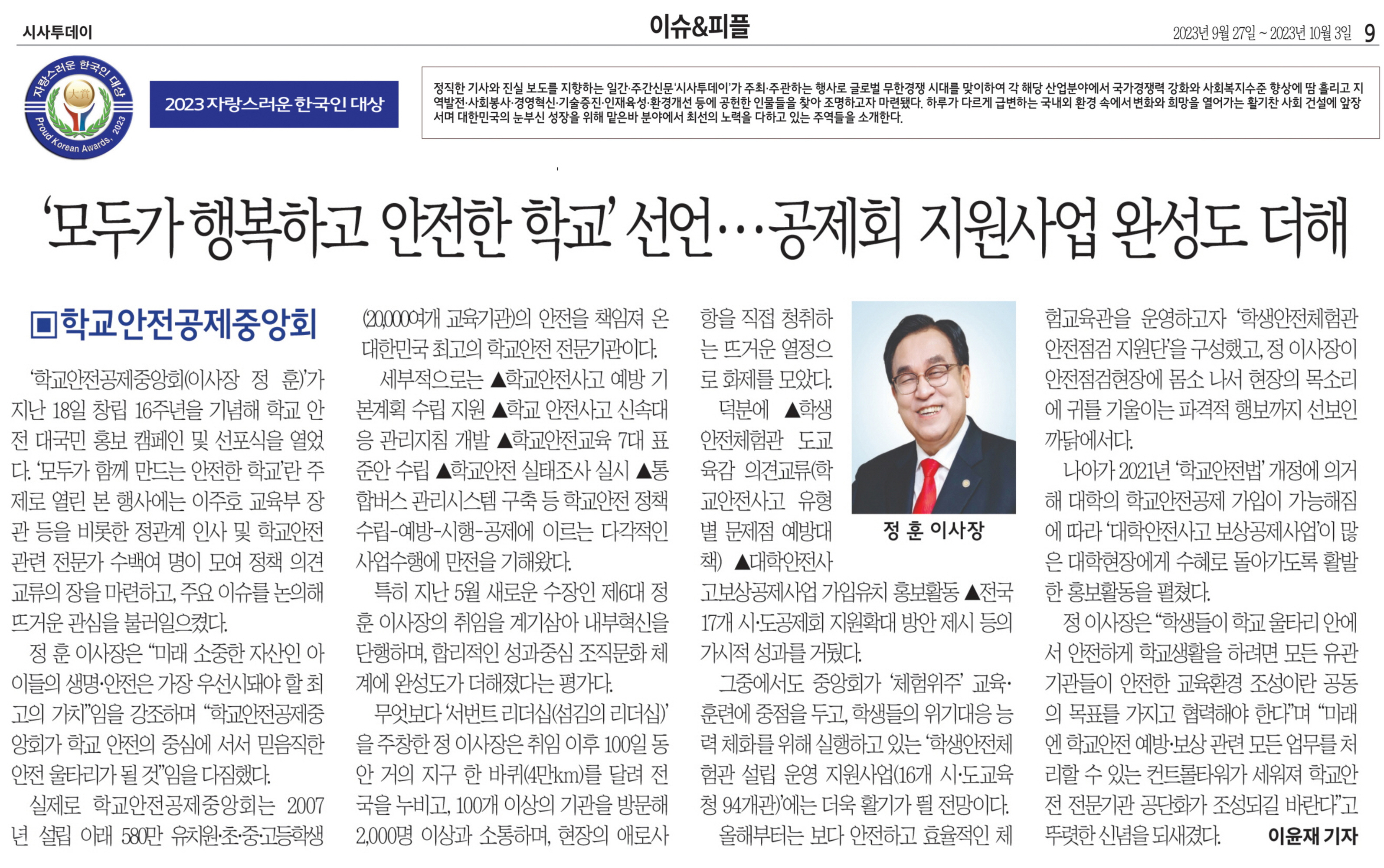 2023년 10월 학교안전공제중앙회 보도기사