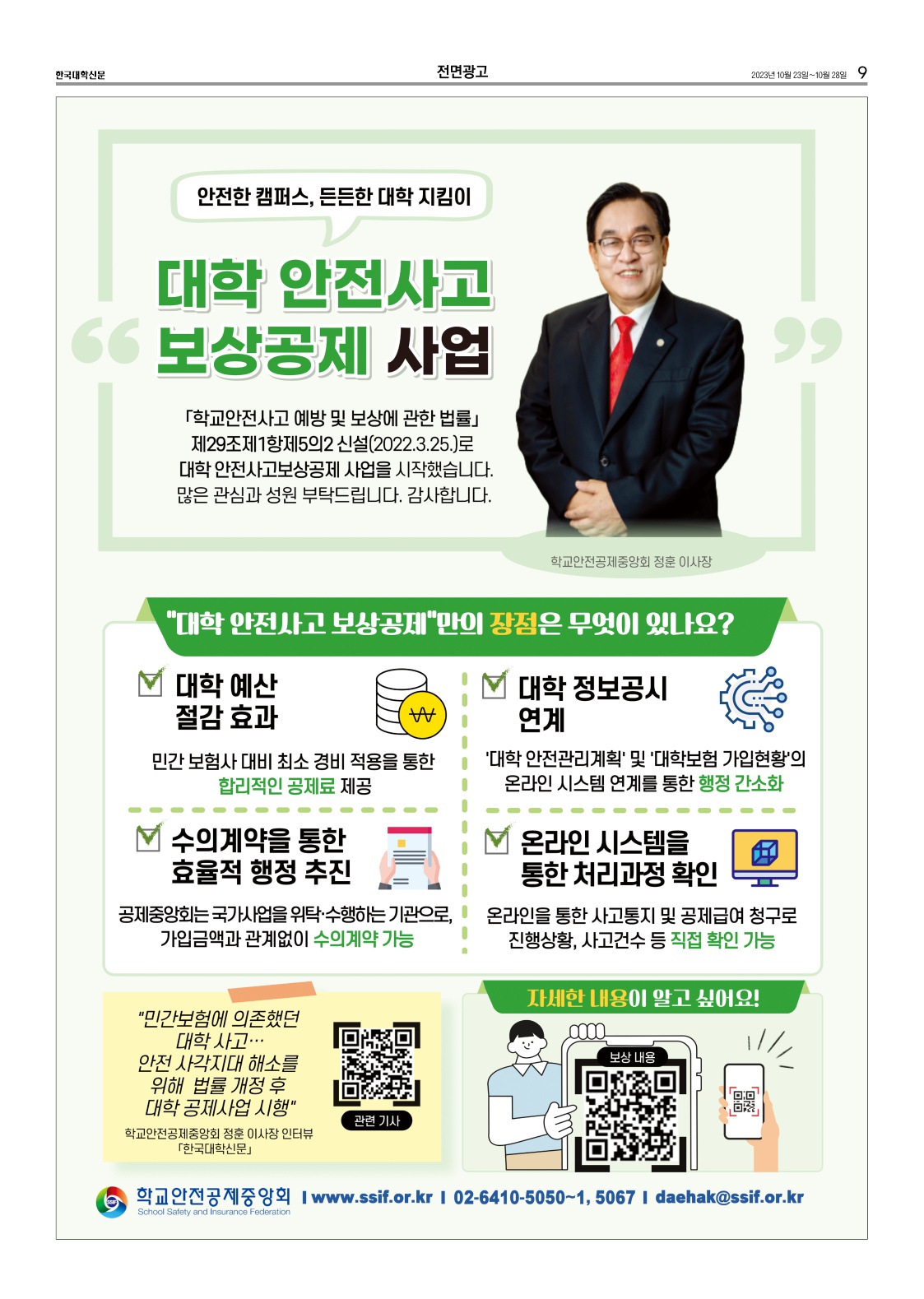 - (2023.10.23.) 대학 안전사고 보상공제 사업 : 지면신문 9면