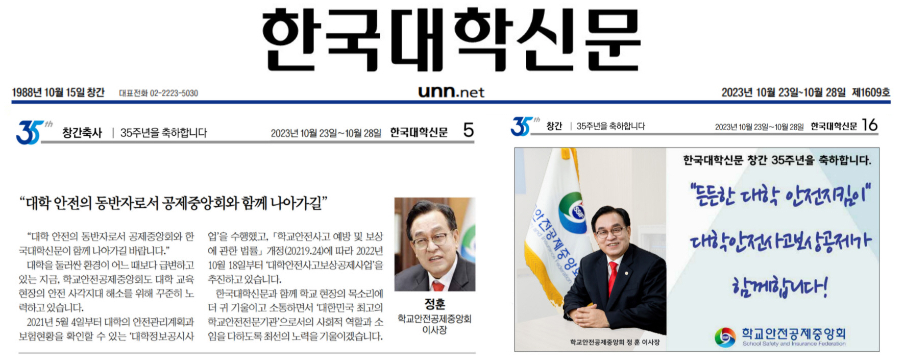 - (2023.10.23.) 대학신문 창간 35주년 축하인사 : 지면신문 5면 및 16면