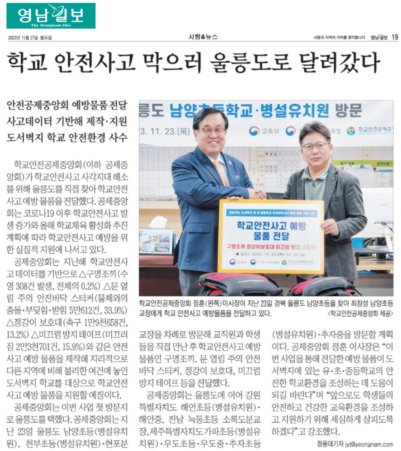 ○ (2023.11.27.) 학교 안전사고 막으러 울릉도로 달려갔다 : 지면신문 19면