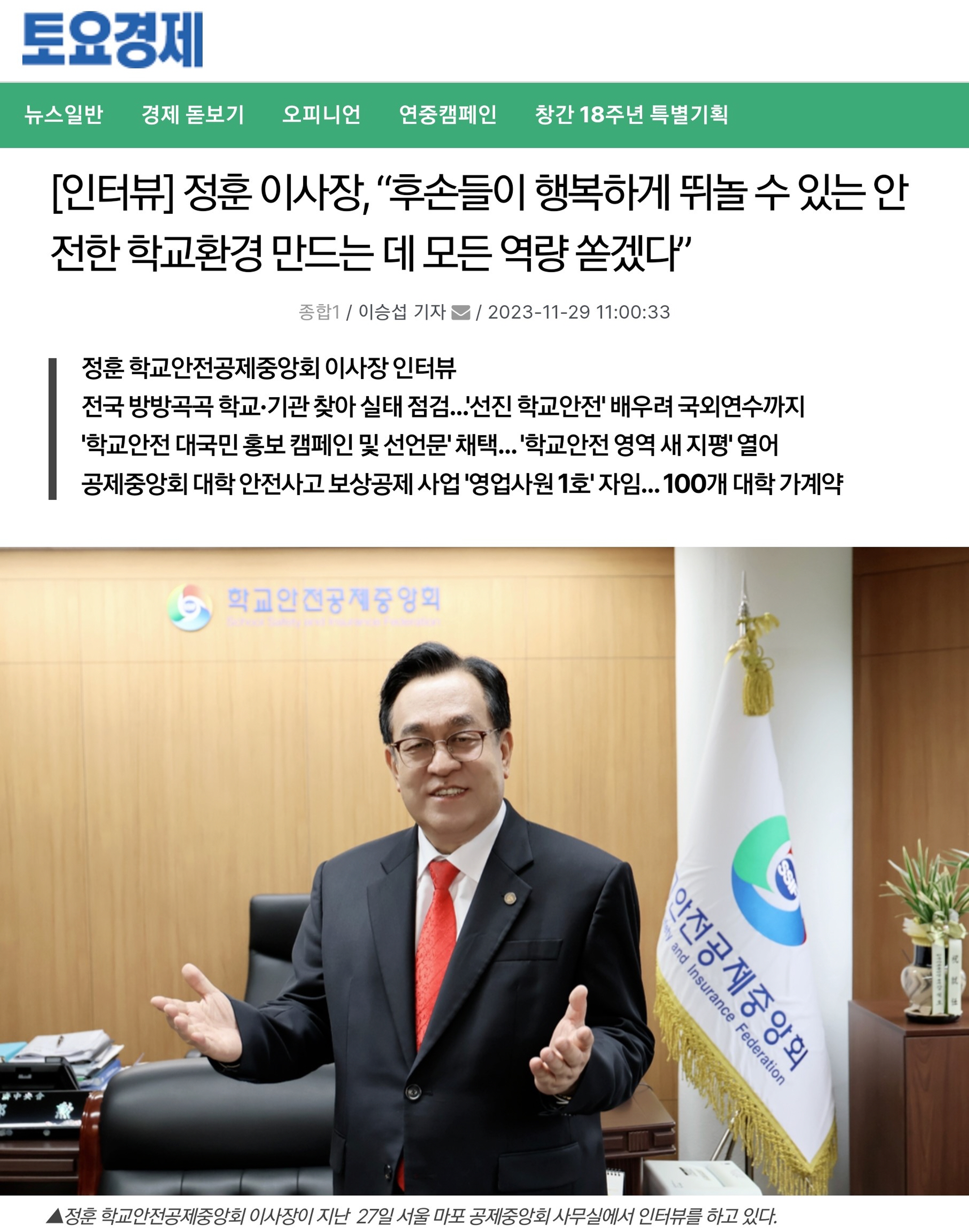 □ [중부일보] (2023.11.23.) 학교안전공제중앙회, 학교안전사고 사각지대 해소 앞장 http://www.joongboo.com/news/articleView.html?idxno=363622425