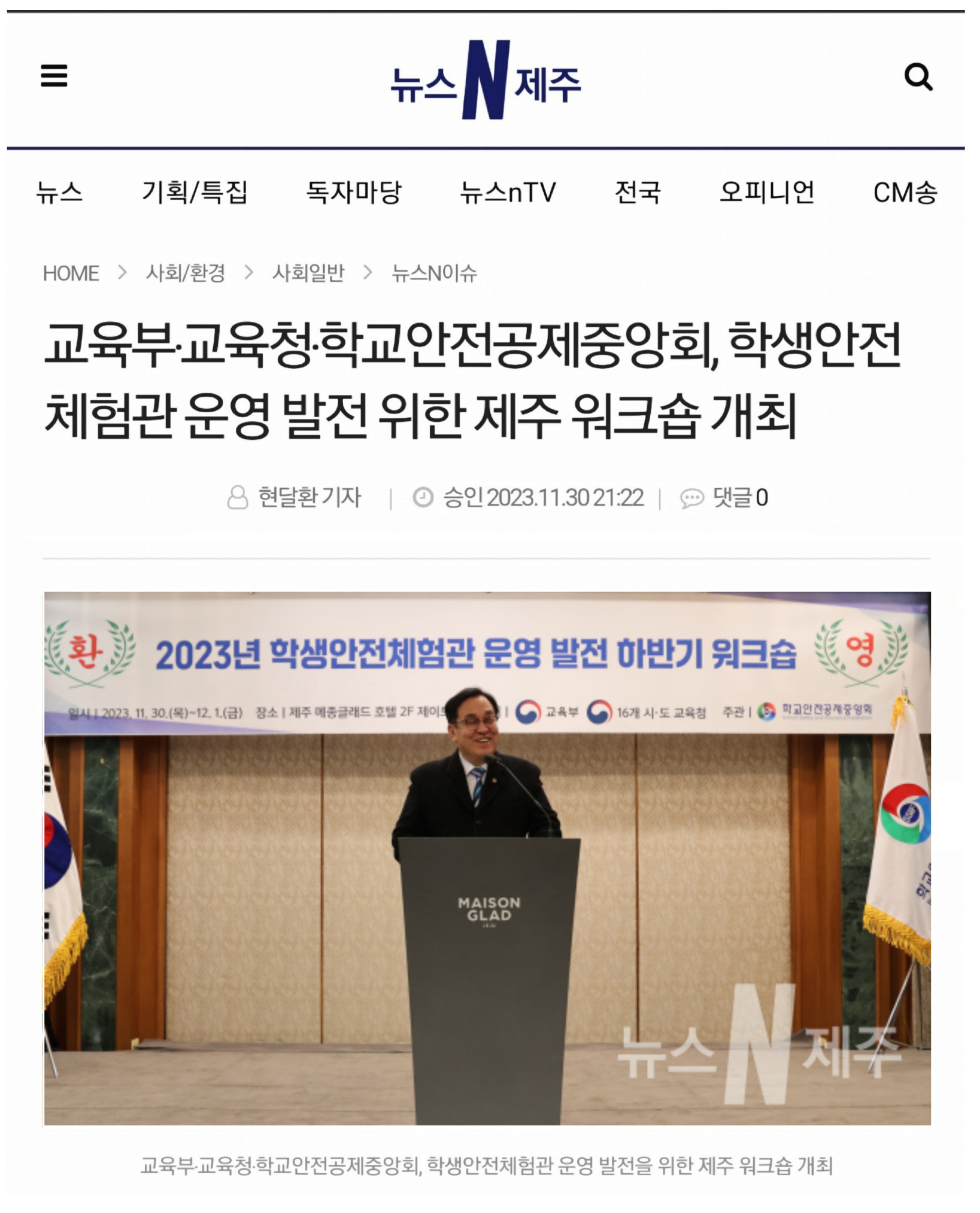 ○ (2023.11.30.) 교육부‧교육청‧학교안전공제중앙회, 학생안전체험관 운영 발전 위한 제주 워크숍 개최 http://www.newsnjeju.com/news/articleView.html?idxno=135529