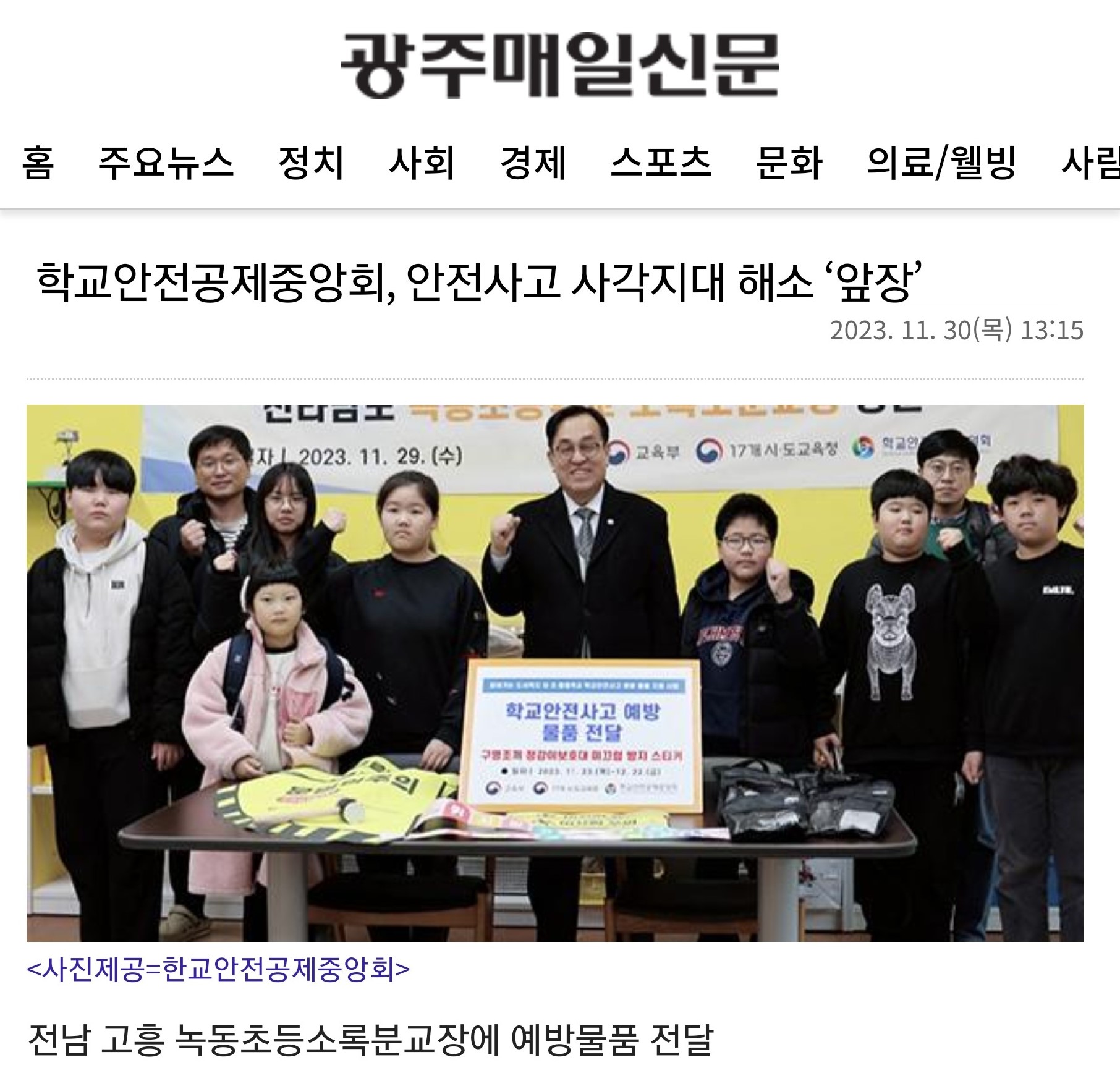 3. 찾아가는 도서벽지 유·초·중등학교 학교안전사고 예방을 위한 물품지원 사업 보도기사