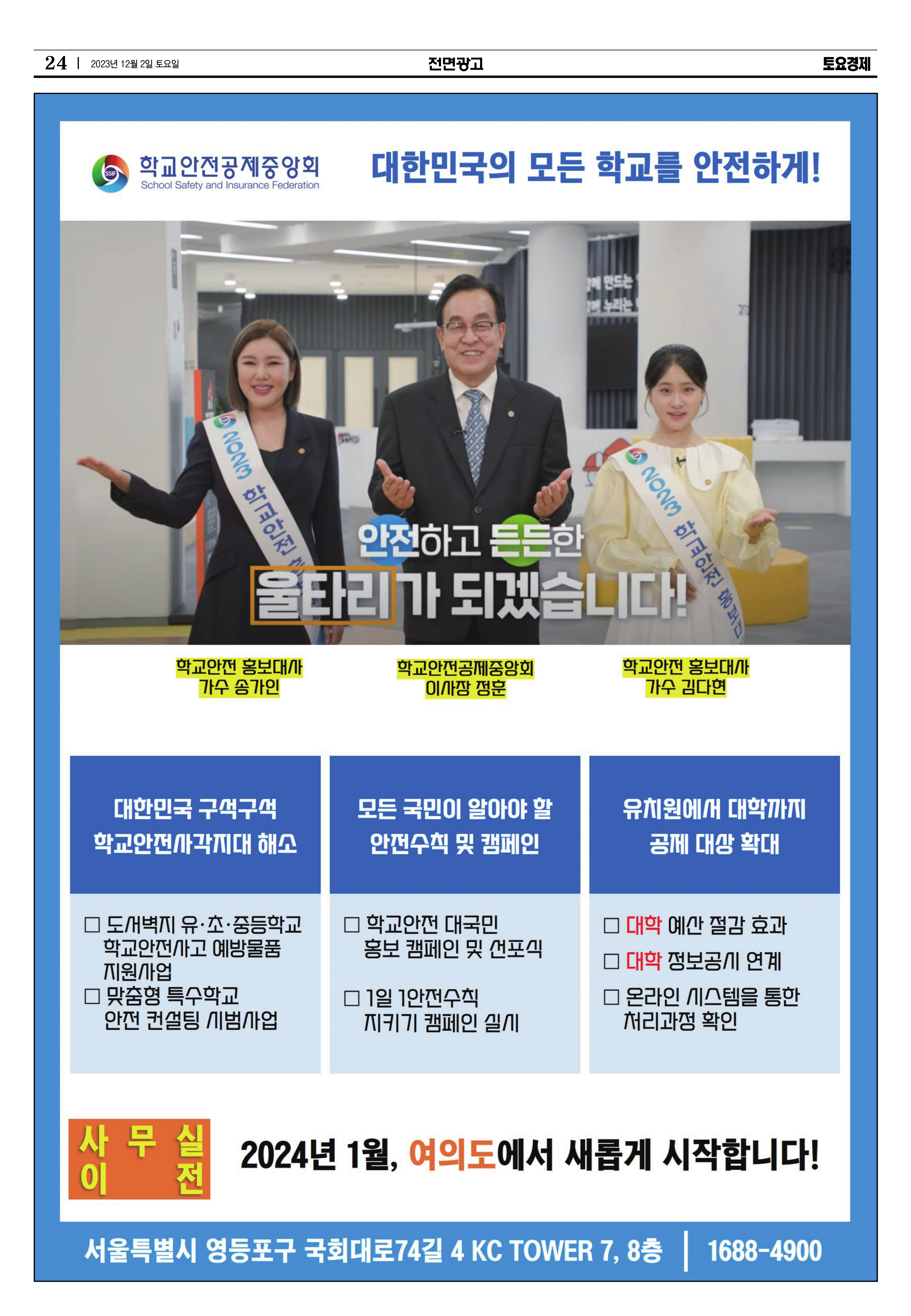 □ [토요경제] (2023.12.2.) 여의도 사무실 전면광고 : 지면신문 24면