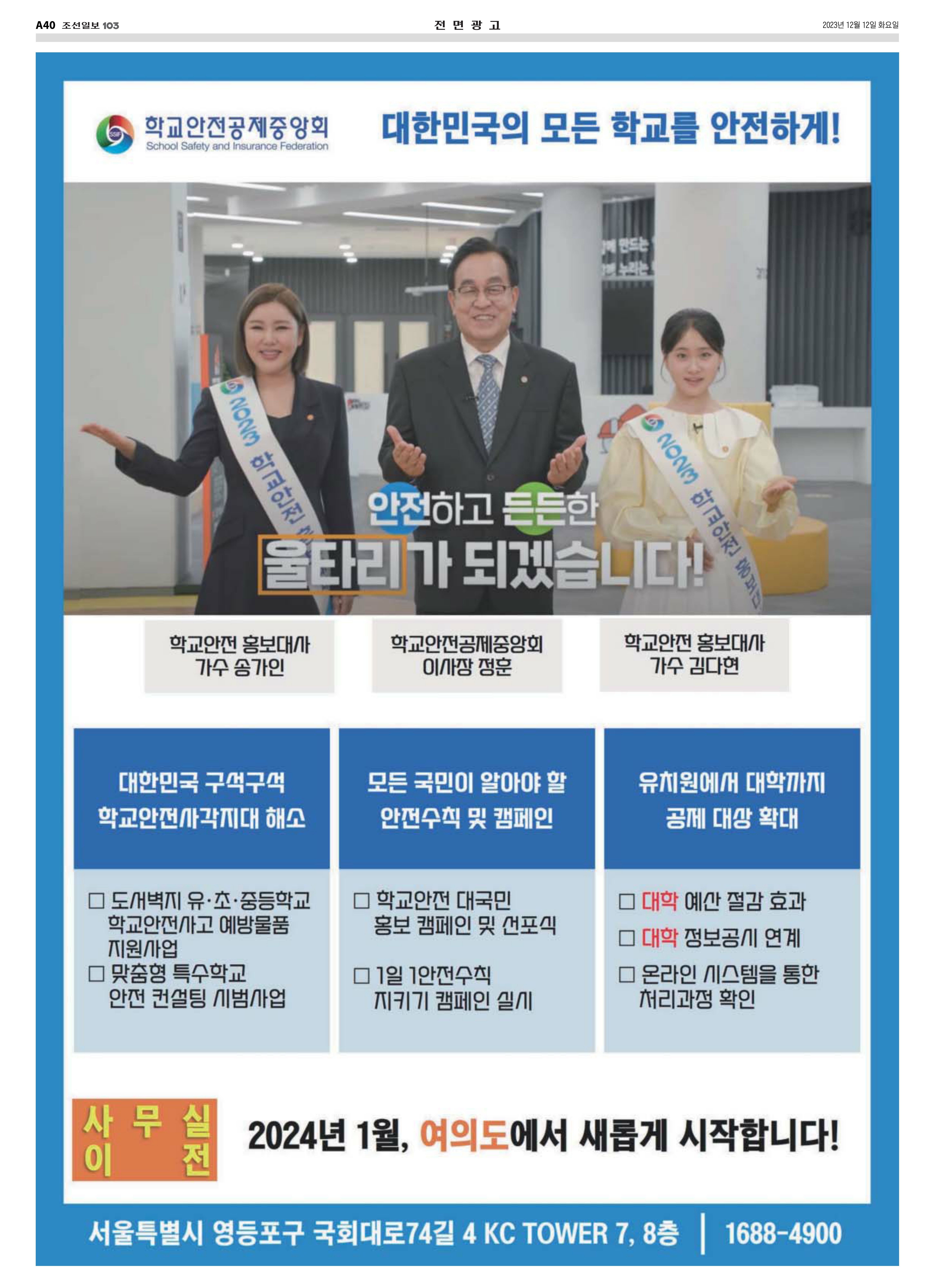 □ [조선일보] (2023.12.12.) 여의도 사무실 전면광고 : 지면신문 40면