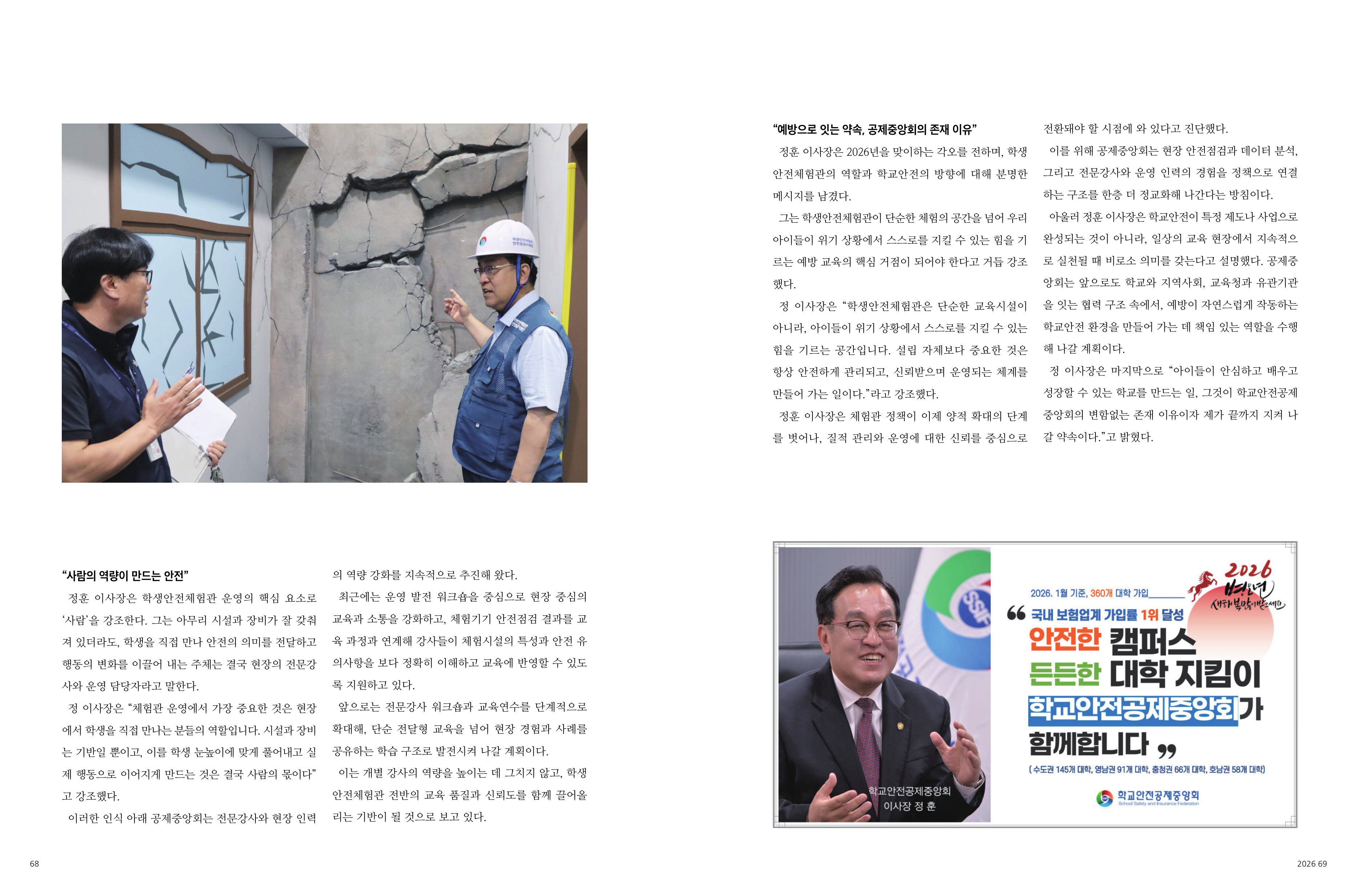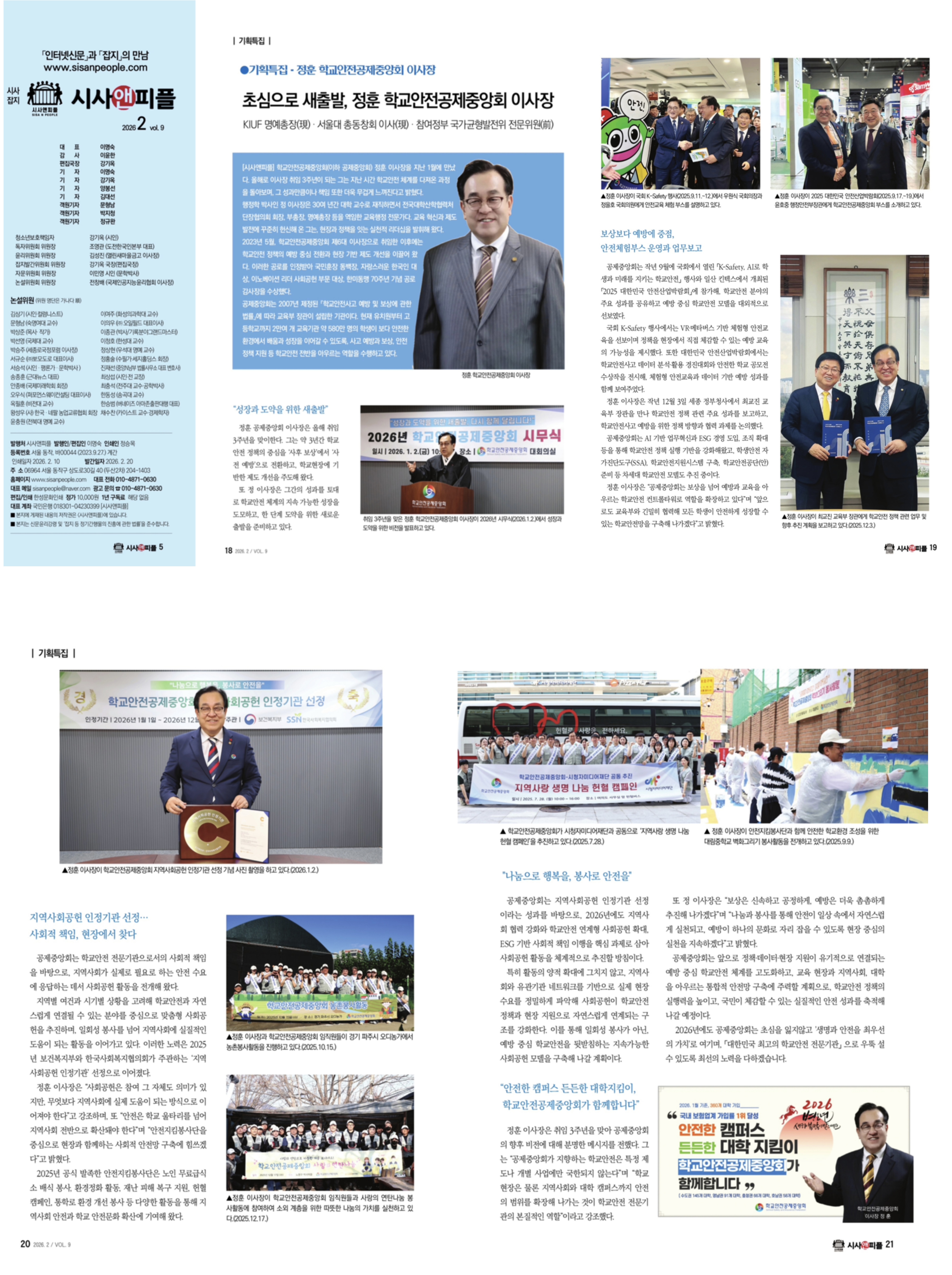 ○ (2026.2월호) 학교안전공제중앙회 정훈 이사장: 표지 및 지면 62~69면