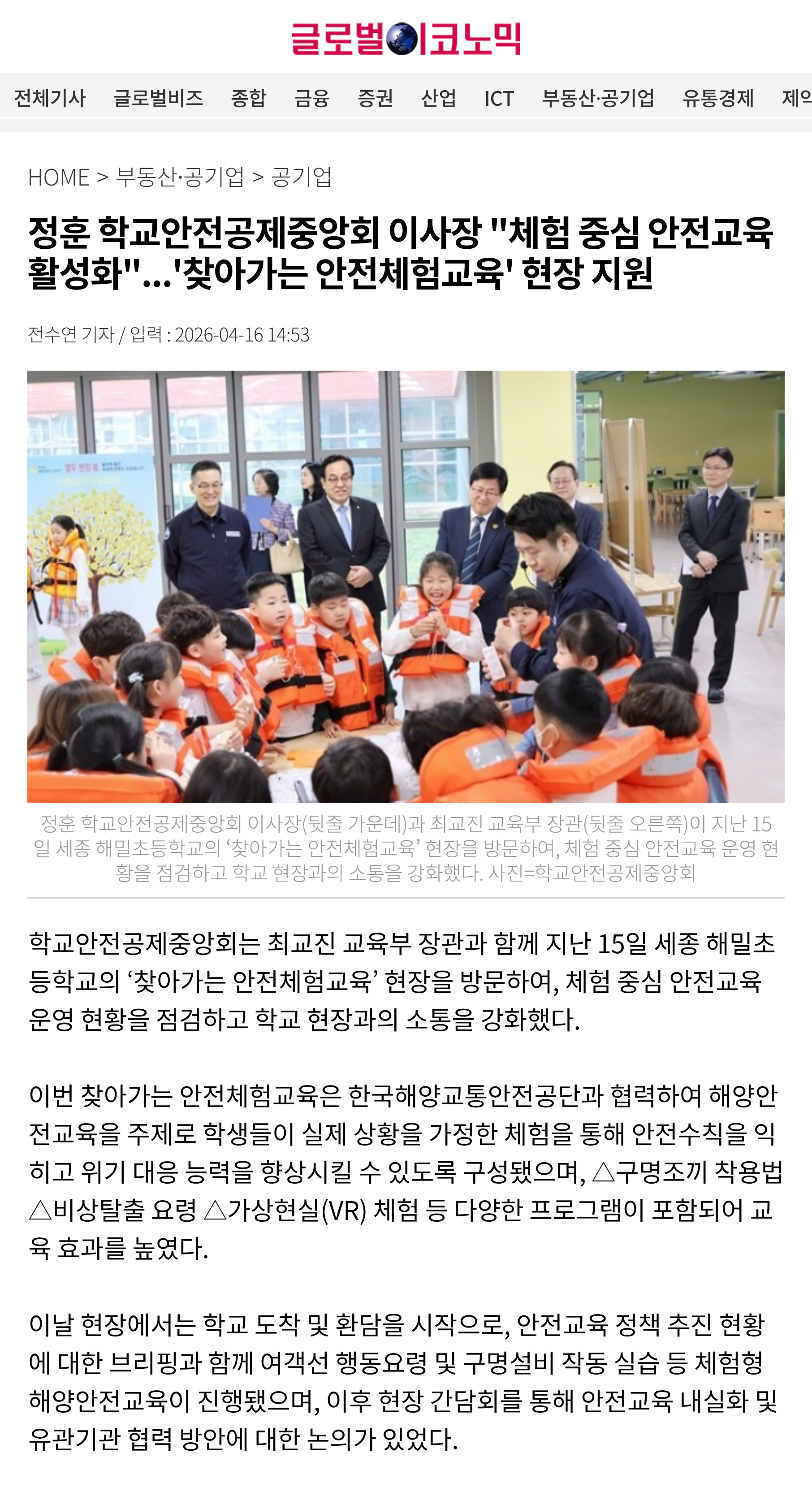 □ [글로벌이코노믹] (2026.04.16.) 정훈 학교안전공제중앙회 이사장 "체험 중심 안전교육 활성화"...'찾아가는 안전체험교육' 현장 지원 https://m.g-enews.com/view.php?ud=202604161420502367a9fc143920_1