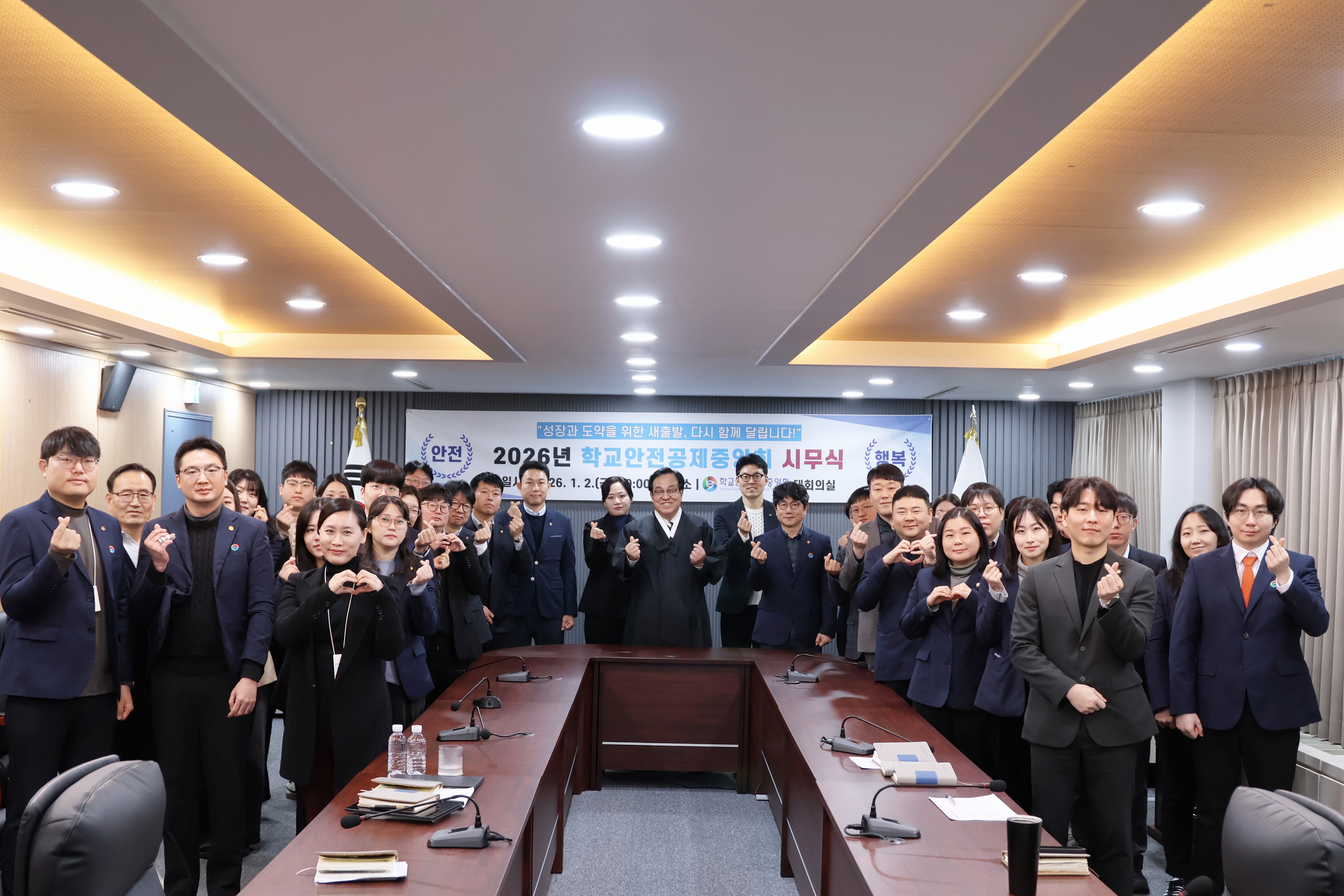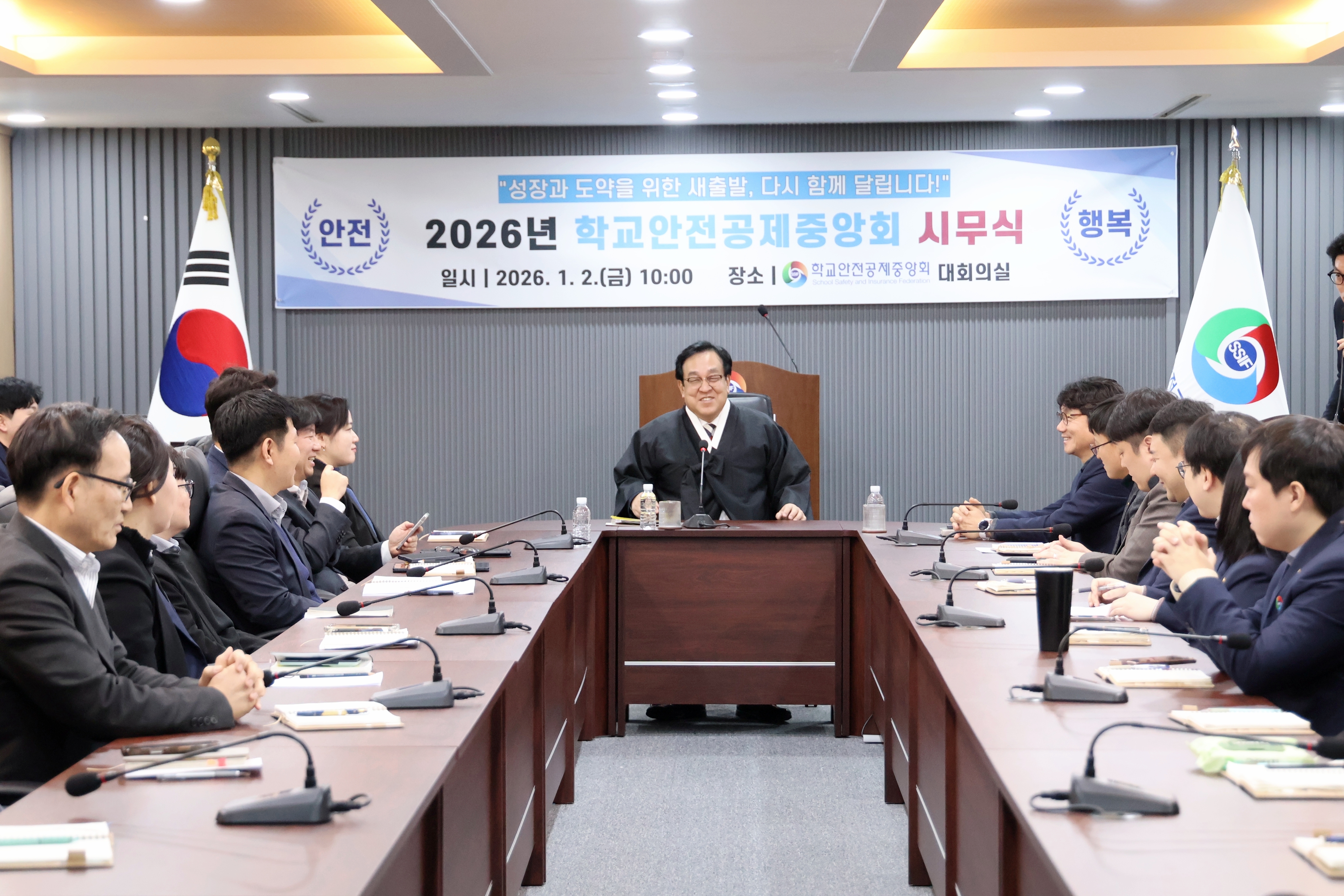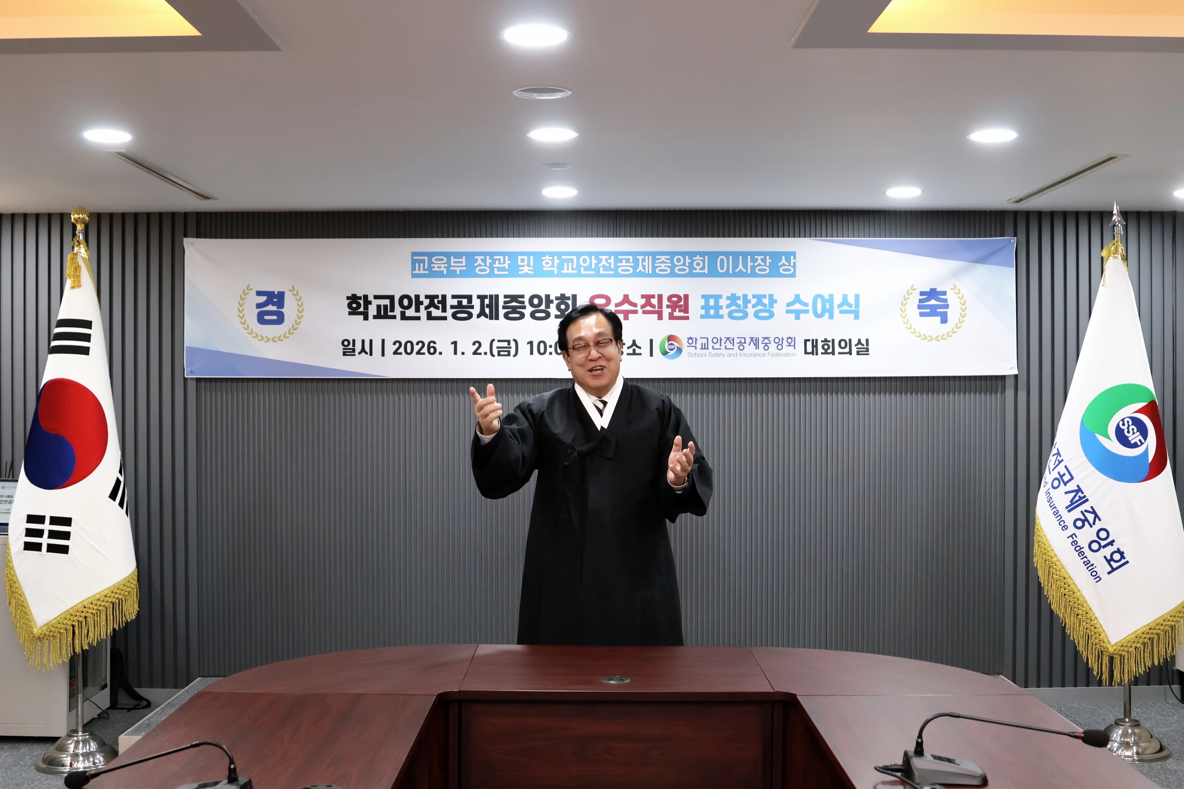 2026.1.2.(금) 학교안전공제중앙회 시무식과 우수직원 표창장 및 지역사회공헌 인정기관 패 수여식 사진입니다.(학교안전공제중앙회 8층 대회의실)