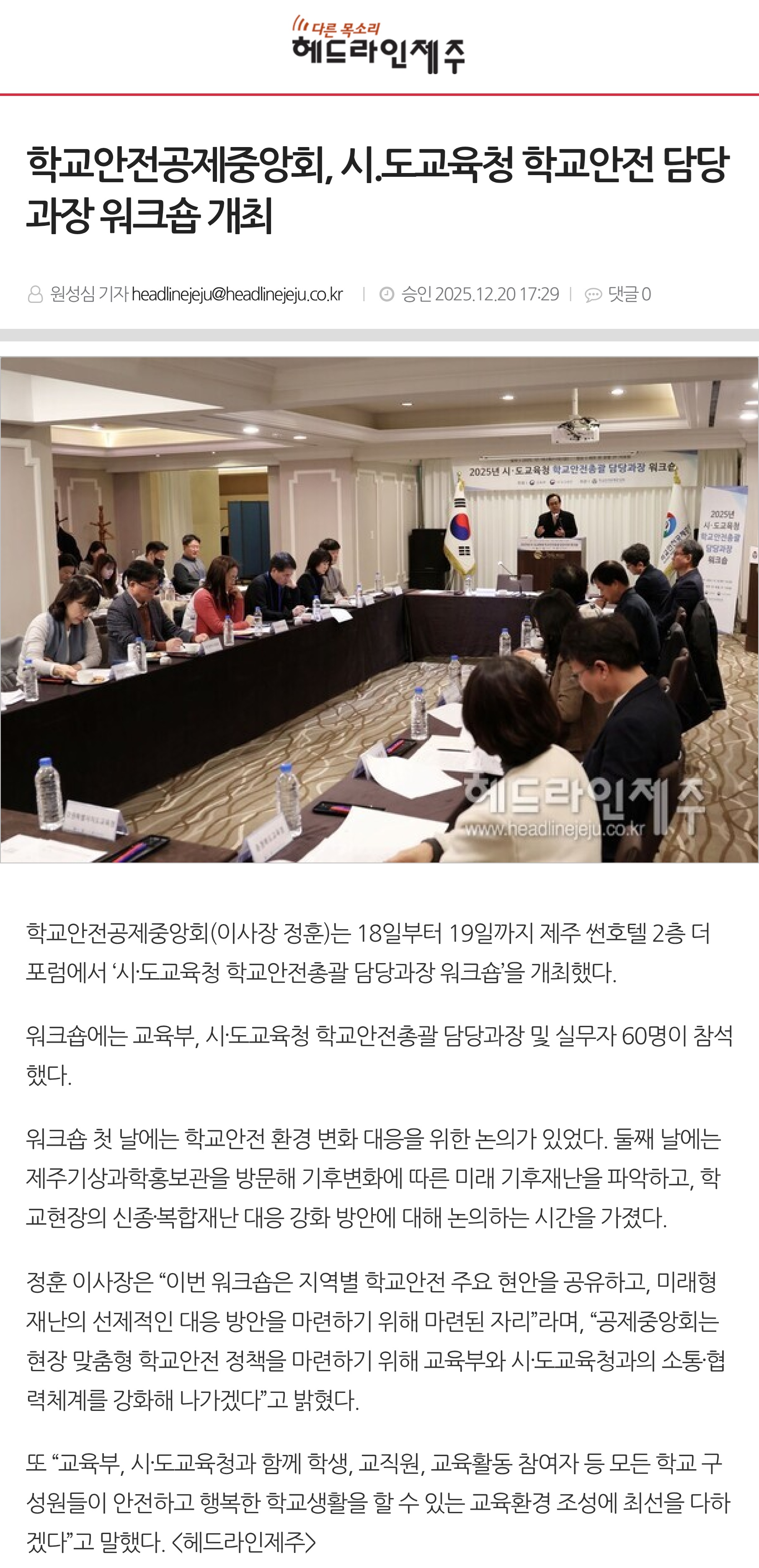 □ [헤드라인제주] (2025.12.20.) 학교안전공제중앙회, 시.도교육청 학교안전 담당과장 워크숍 개최 https://www.headlinejeju.co.kr/news/articleView.html?idxno=583841